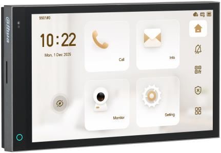 Vnitřní zobrazovací jednotka IP videotelefonu s barevným dotykovým displejem. Obousměrná audio komunikace s venkovními jednotkami VTO přes SIP protokol. Nastavení z programu ConfigTool. Možnost připojení IPC kamer z kamerového systému Dahua. Otevírání elekrického zámku. Relé vstupy/výstupy. Nástěnná montáž nebo stolní s příslušenstvím. Napájení PoE nebo 12 VDC.
