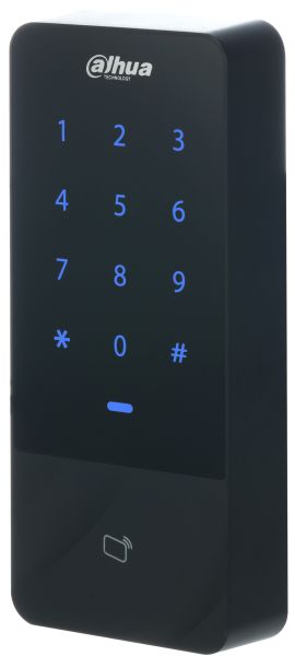 Venkovní autonomní čtečka karet s dotykovou klávesnicí a podsvitem, audio signalizace. Možnost připojení druhé externí čtečky a použití pro řízení obousměrného průchodu. Autorizace uživatele zadáním kódu, přiložením karty nebo potvrzení karty kódem. Pro obsluhu dveří je možné dále využít vstup pro odchodové tlačítko. Nastavení přes z programu SmartPSS Lite nebo DSS. Plastové provedení, krytí IP66.