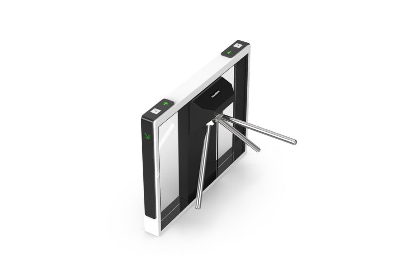 Venkovní turniket Daosafe DS-Q10 ve tvaru mostu. V případě nouze umožňuje volný průchod pouhým odklopením ramena.