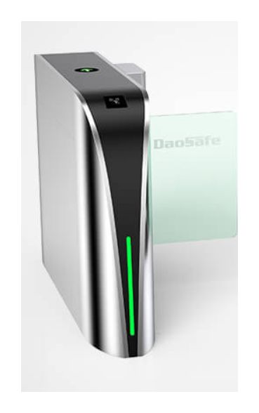 Daosafe dao_DS2000_L vnitřní levá rychlostní brána. V případě nouzového signálu zajišťuje volný průchod.