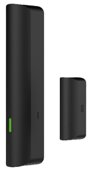 Černý bezdrátový magnetický detektor s měřením okolní teploty, umístění na dveře a okna mimo kovových, další 1 drátový detektor nebo jiné periferie, systém rozpozná ve které z připojených zón došlo k poplachu, LED indikátor stavu, tamper. Frekvence 868 MHz, zabezpečení AES-128, přenos 1200 m (viditelná vzdálenost), aplikací nastavitelný.