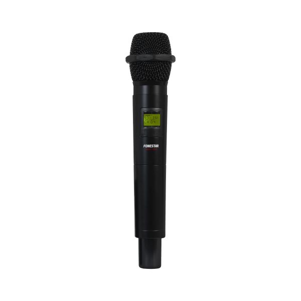 Ruční UHF mikrofon (570–582 MHz), 32 frekvencí. Jednosměrná elektretová kapsle, spolehlivý přenos.