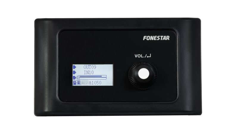 Fonestar MPX-420V je dálkový ovladač pro audio matici MPX-4088, který umožňuje snadné ovládání hlasitosti a přiřazení zón. Lze připojit až 16 ovladačů k jedné matici, což zajišťuje flexibilní správu zvuku v různých částech instalace.