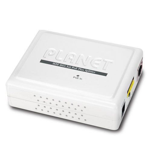 PoE splitter dokáže rozdělit napájení 52–56 V DC přenášené po ethernetovém kabelu na volitelný výstup 5 V nebo 12 V DC. Ideální řešení pro napájení síťových zařízení přímo prostřednictvím rozhraní RJ45 v souladu se standardem IEEE 802.3at, který podporuje maximální vstupní výkon 25,5 W.